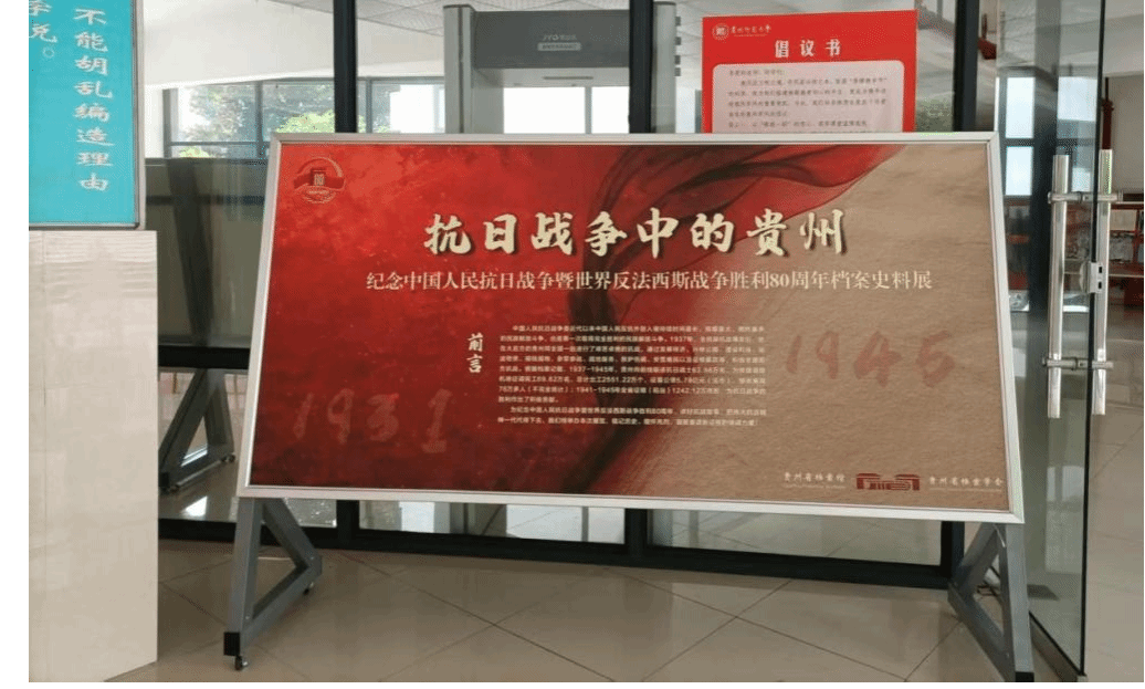2025 年是中国人民抗日战争暨世界反法西斯战争胜利 80 周年,为铭记历史、缅怀先烈、珍爱和平、开创未来,充分挖掘和展现抗日战争时期贵州地区的重要历史贡献,贵州省档案馆联合贵州师范大学档案馆于2025年9月15日至9月30日精心策划并成功举办了“抗日战争中的贵州:纪念中国人民抗日战争暨世界反法西斯战争胜利80周年档案史料展”。