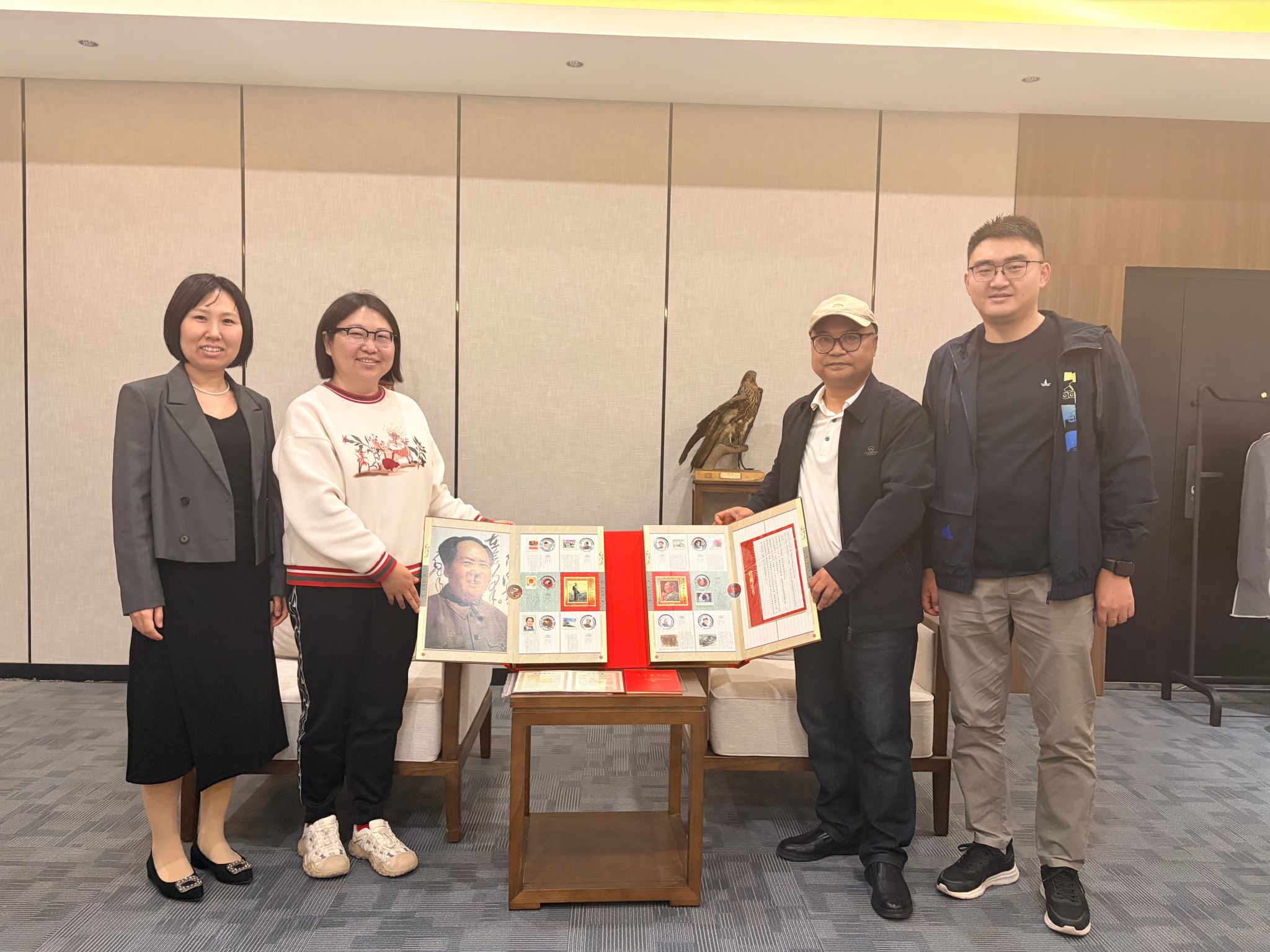 2026 年 4 月 17 日下午,贵州师范大学机电学院任珍刚、姚立国老师向学校档案馆捐赠毛泽东主题纪念藏册 1 套。档案馆副馆长芦晓、编研科全体工作人员参加捐赠活动,双方就红色藏品保护、文化育人等工作进行交流。